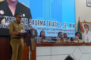 Sekretaris Daerah (Sekda) Kab. Tangerang, Soma Atmaja membuka acara Sosialisasi Penguatan Budaya Hukum Dalam Kehidupan Masyarakat Desa di wilayah Kec. Tigaraksa, Senin (20/04/26)