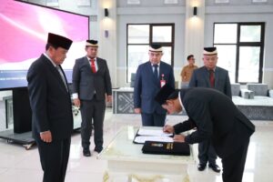 Tangerang Regent Moch Maesyal Rasyid inaugurated and swore in the Director of Operations (Dirops) of the Kerta Raharja (NKR) Market Business Unit (Perumda Pasar Niaga Kerta Raharja). The event took place at the Tangerang Regent’s Hall on Jl. Kisamaun, Tangerang City, on Tuesday (December 30, 2025).