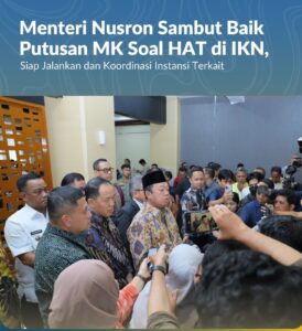 Menteri Agraria dan Tata Ruang/Kepala Badan Pertanahan Nasional (ATR/BPN), Nusron Wahid, menyambut baik putusan Mahkamah Konstitusi (MK) terkait pengaturan Hak Atas Tanah (HAT) di Ibu Kota Nusantara (IKN).